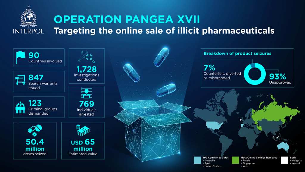 - Operation Pangea XVII took place from December 2024 to May 2025 across 90 countries. It resulted in the seizure of 50 million doses of illicit pharmaceuticals worth USD 65 million, highlighting the alarming scale of the global trade in unapproved and counterfeit medicines.